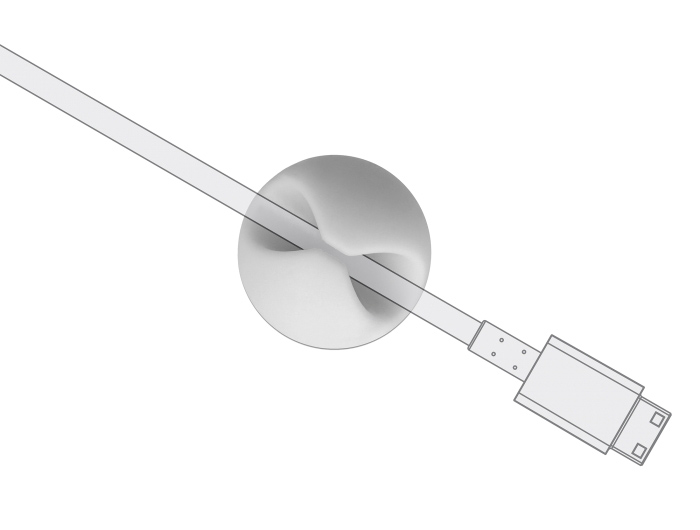 Οργανωτές καλωδίων σιλικόνης με θέση για 1 καλώδιο με μέγιστη διάμετρο 5mm. Είναι κατάλληλοι για την εύκολη τακτοποίηση καλωδίων όπως USB ή τροφοδοσίας και η τοποθέτηση του γίνεται σε οποιαδήποτε επίπεδη επιφάνεια με αυτοκόλλητο. Η συσκευασία περιλαμβάνει 10 οργανωτές καλωδίων σιλικόνης.