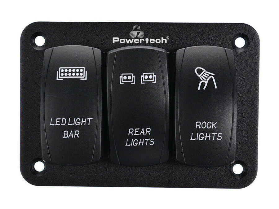Πάνελ με 3x διακόπτες φώτων από την Powertech, κατάλληλο για τοποθέτηση σε κονσόλες σκαφών.