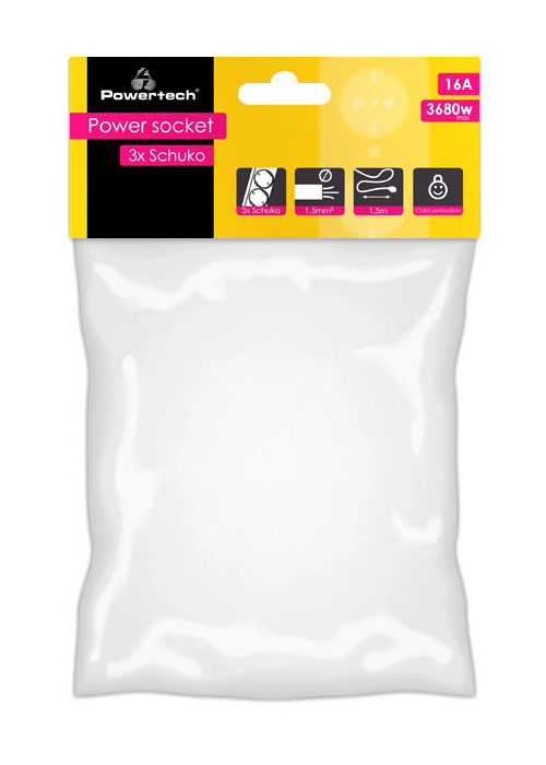 POWERTECH πολύπριζο PT-868, 3x schuko, 16A, 1.5m, λευκό