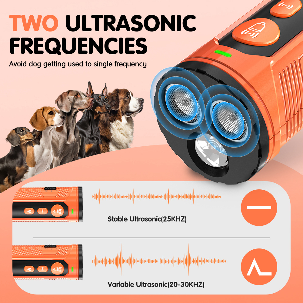 Συσκευή εκπαίδευσης σκύλου με 4 λειτουργίες (ήχος, υπέρηχοι, υπέρηχοι/φως, LED φωτισμός) της Powertech, ιδανική για την εκμάθηση βασικών εντολών σε σκύλους όπως η αποτροπή γαυγίσματος, δαγκώματος κλπ.