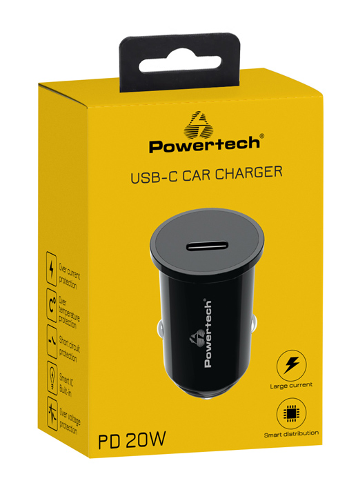 POWERTECH φορτιστής αυτοκινήτου PT-1146, USB-C, 20W PD, μαύρος