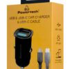 POWERTECH φορτιστής αυτοκινήτου PT-1229, καλώδιο, USB/USB-C, 30W, μαύρος