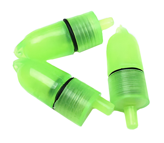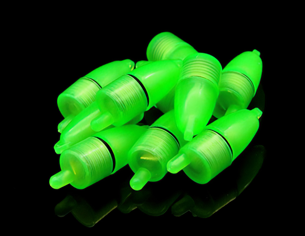 Τα φωτεινά LED ψαρέματος FISH-0011, τοποθετούνται στην πετονιά ψαρέματος μπορούν να χρησιμοποιηθούν με τον φωτισμό τους για τον εντοπισμό της πετονιάς την νύχτα. Τα LED δουλεύουν με μπαταρία (συμπεριλαμβάνεται) και είναι εξαιρετικά φωτεινά παράγοντας έντονο πράσινο φωτισμό. Είναι φτιαγμένα από ανθεκτικό αδιάβροχο υλικό και είναι πλήρως επαναχρησιμοποιήσιμα. Η συσκευασία περιέχει 10 τεμάχια