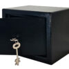 Χρηματοκιβώτιο της Powertech με δύο ενισχυμένους πύρους κλειδώματος, κατασκευασμένο από ατσάλι. Διαθέτει κλειδαριά με κλειδί για το κλείδωμα και ξεκλείδωμα του χρηματοκιβώτιου.