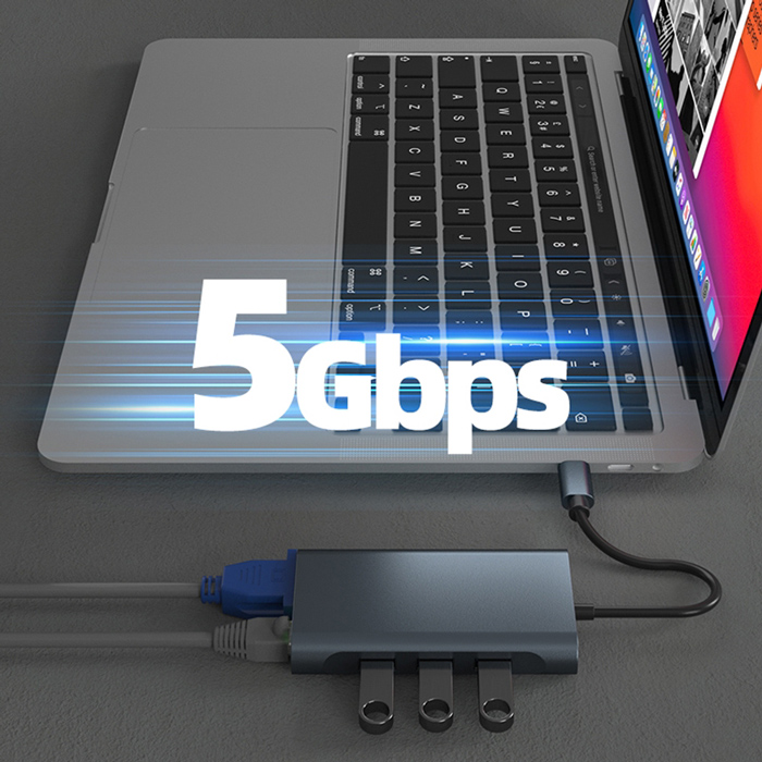 POWERTECH docking station BYL-2311 8 θυρών, USB-C σύνδεση, 100W PD, γκρι
