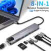 POWERTECH docking station PT-1537, 8 θυρών, USB-C σύνδεση, 100W PD, 1000Mbps, γκρι
