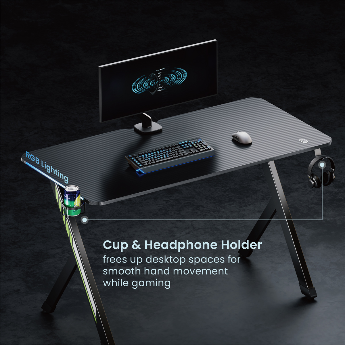 POWERTECH gaming γραφείο PT-1498 με RGB φωτισμό, 120x60x75cm, μαύρο