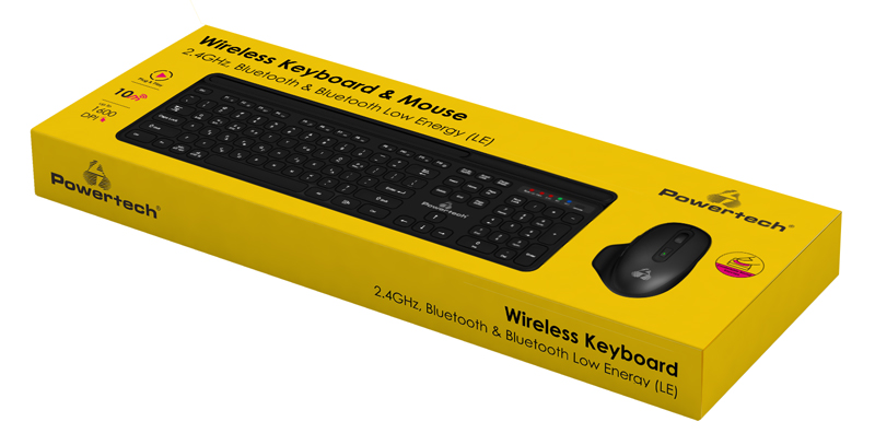 POWERTECH set ποντίκι & πληκτρολόγιο PT-1154, 2.4GHz & Bluetooth, μαύρο