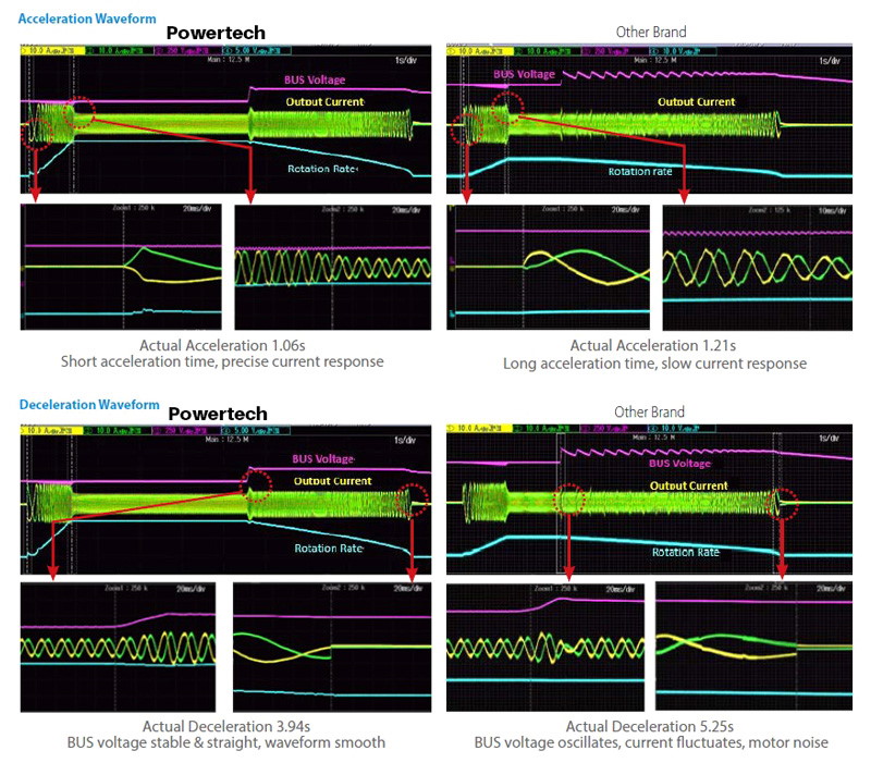 Rapid current limit: Reduce the risk of over-current faults to keep VFD operated normally.