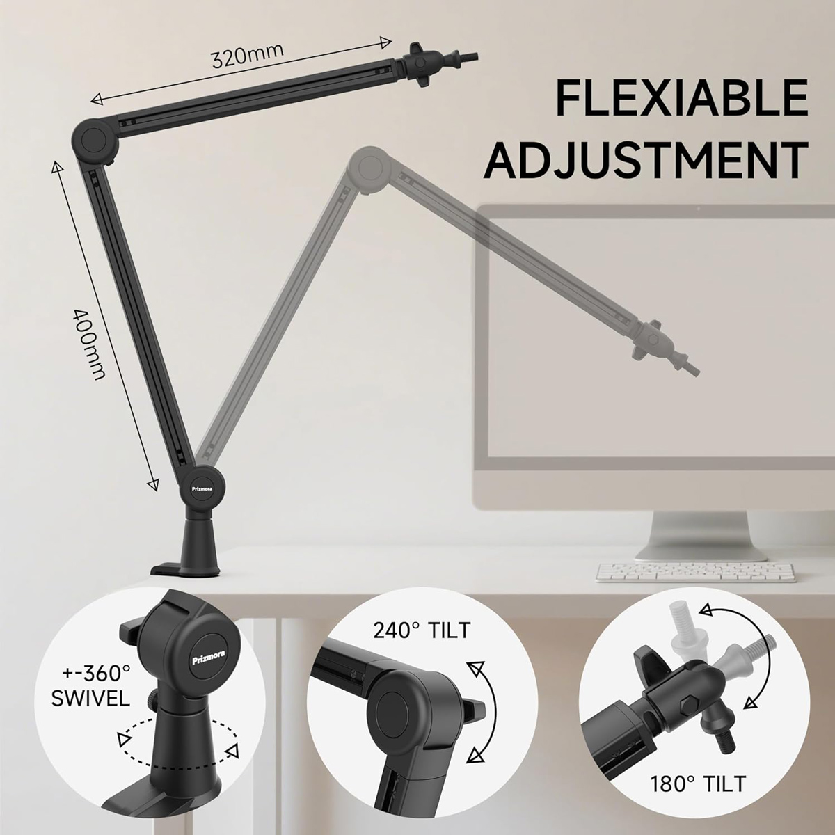 PRIZMORA βάση γραφείου για μικρόφωνο/smartphone AS26 με βραχίονα 2 σημείων, μαύρη