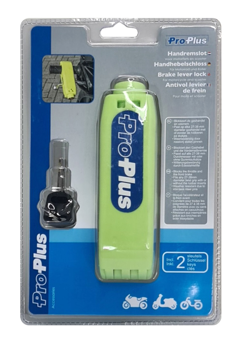 Κλειδαριά μανέτας φρένου της ProPlus για μηχανές και σκούτερ. Εμποδίζει την ανεπιθύμητη μετακίνηση της μηχανής, μπλοκάροντας το γκάζι και το μπροστινό φρένο.