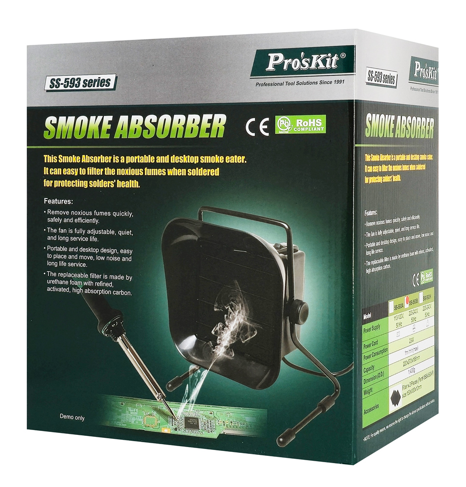 PROSKIT σταθμός απορρόφησης καπνού SS-593B με φίλτρο άνθρακα, 23W