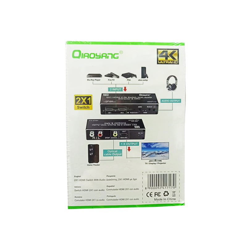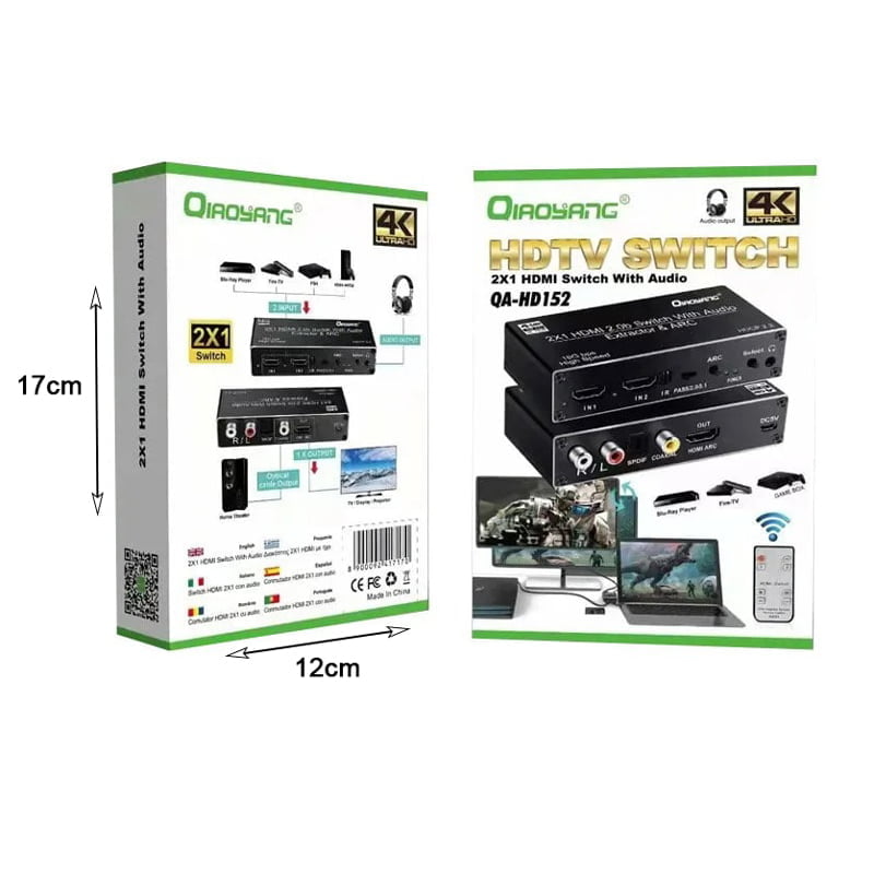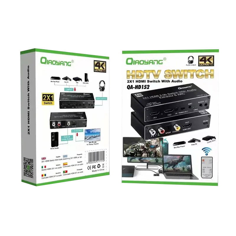 Qiaoyang HDTV Διακόπτης 2×1 HDMI με ήχο QA-HD152
