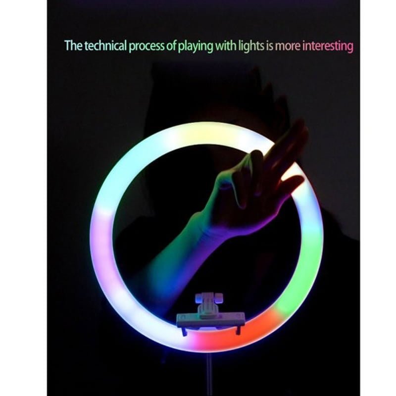 RGB LED RING LIGHT 8 ΙΝΤΣΩΝ ΜΕ ΡΥΘΜΙΖΟΜΕΝΗ ΒΑΣΗ ΓΙΑ ΠΕΡΙΣΤΡΟΦΗ 360 ΜΟΙΡΩΝ, ΔΙΝΟΝΤΑΣ ΣΑΣ ΠΟΛΛΕΣ ΕΠΙΛΟΓΕΣ ΧΡΩΜΑΤΩΝ ΚΑΙ ΓΩΝΙΩΝ.