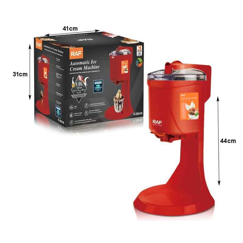 Απολαύστε δροσερές δημιουργίες με την RAF R.0901R Αυτόματη Παγωτομηχανή, ιδανική για παγωτό, παρφέ και παγωμένα επιδόρπια στο σπίτι. Χωρητικότητα 1 λίτρου, είναι ο τέλειος σύμμαχος για οικογενειακές στιγμές και παιδικά πάρτι!