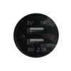 Πρακτικός διπλός φορτιστής USB για αυτοκίνητο, κατάλληλος για ενσωμάτωση σε ταμπλό ή άλλο σημείο του οχήματος. Υποστηρίζει τάση εισόδου 12V–24V και διαθέτει δύο εξόδους USB: 5V/1A και 5V/2.1A, ιδανικές για φόρτιση κινητών, GPS, tablet και άλλων συσκευών. Περιλαμβάνει καπάκι προστασίας για χρήση σε εξωτερικό ή εσωτερικό περιβάλλον.
