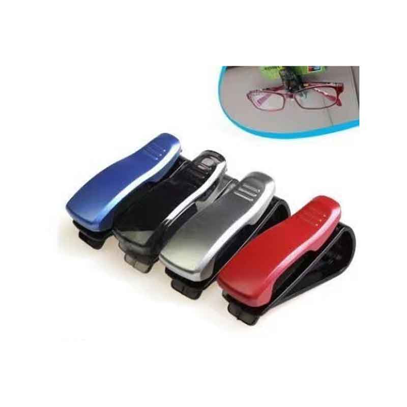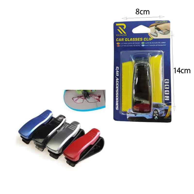 Πρακτικό κλιπ για την αποθήκευση γυαλιών στο αυτοκίνητο. Τοποθετείται εύκολα στο σκίαστρο (sun visor) και συγκρατεί με ασφάλεια τα γυαλιά ηλίου ή οράσεως, ώστε να τα έχετε πάντα προσβάσιμα και προστατευμένα. Κατάλληλο και για κάρτες ή αποδείξεις. Διαθέσιμο σε διάφορα χρώματα (μπλε, μαύρο, ασημί, κόκκινο). Διαστάσεις συσκευασίας: 8 x 14 εκ.