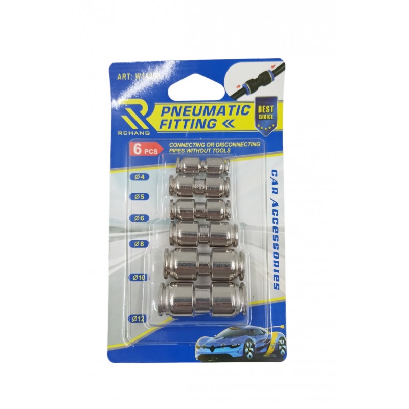 Αυτό το σετ περιλαμβάνει 6 διπλούς συνδέσμους αέρα σε διάφορες διαμέτρους (Φ12, Φ10, ΦΒ, Φ6, Φ5 και Φ4), ιδανικούς για συνδέσεις και επεκτάσεις σωλήνων αέρα. Προσφέρουν ασφαλή και σταθερή εφαρμογή, εξασφαλίζοντας αποτελεσματική ροή αέρα σε συστήματα πεπιεσμένου αέρα. Ιδανικοί για επαγγελματικές και οικιακές εφαρμογές σε εργαστήρια, βιομηχανίες και εργασίες συντήρησης.