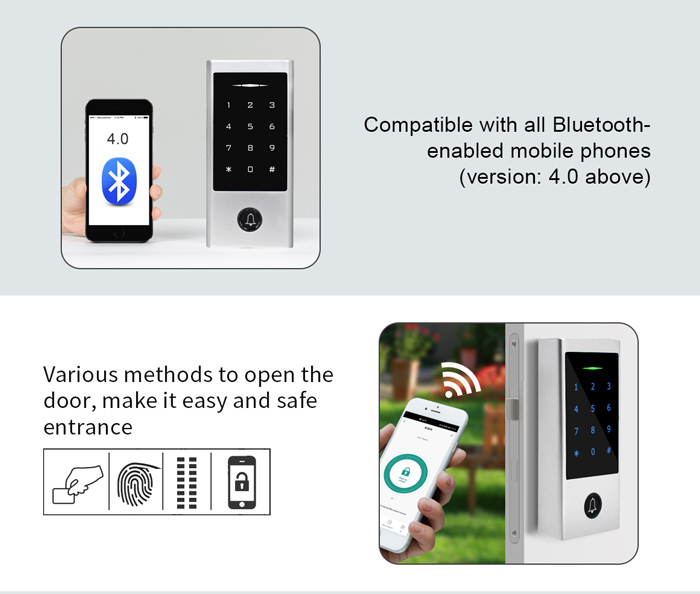 Το H1-BT είναι ένα αδιάβροχο πληκτρολόγιο αφής με δυνατότητα Bluetooth και RFID πρόσβασης. Μπορεί να συνδεθεί με iOS ή Android smartphone μέσω της εφαρμογής TuyaSmart και υποστηρίζει 100 χρήστες (συμπεριλαμβανομένων 255 χρηστών κάρτας/PIN).
