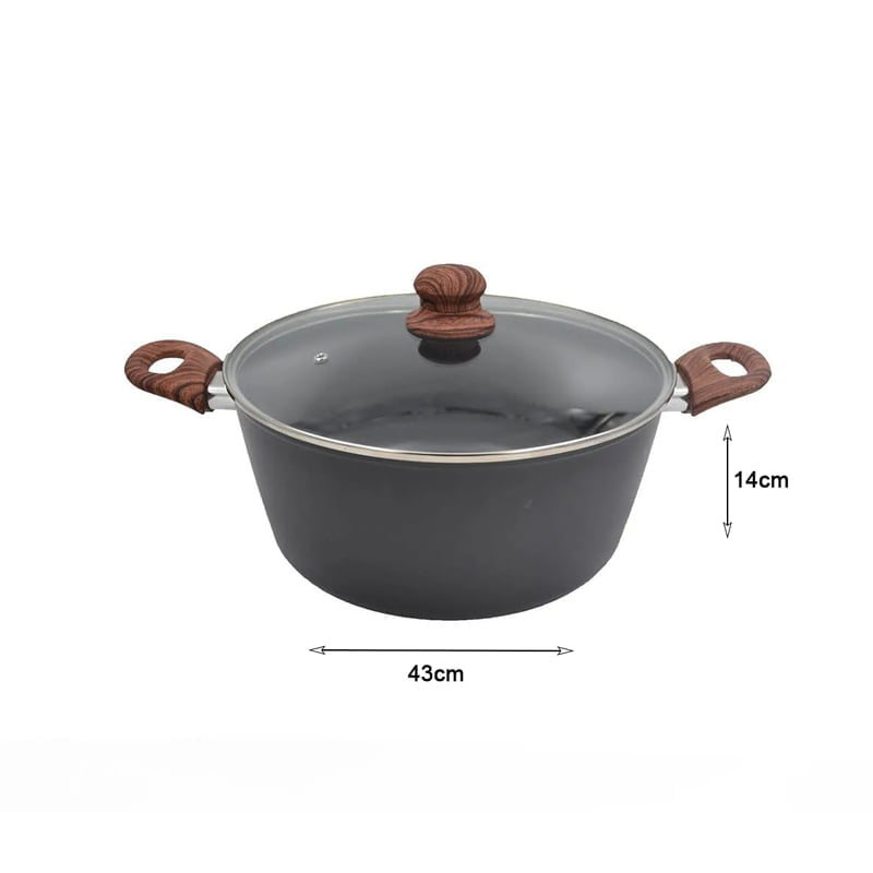 Κατσαρόλα MADERA και με αντικολλητική επίστρωση ,με μαλακή εργονομική λαβή,γυάλινο καπάκι,4 mm πάχους,εξαιρετικής ποιότητας για υγιεινό μαγείρεμα.