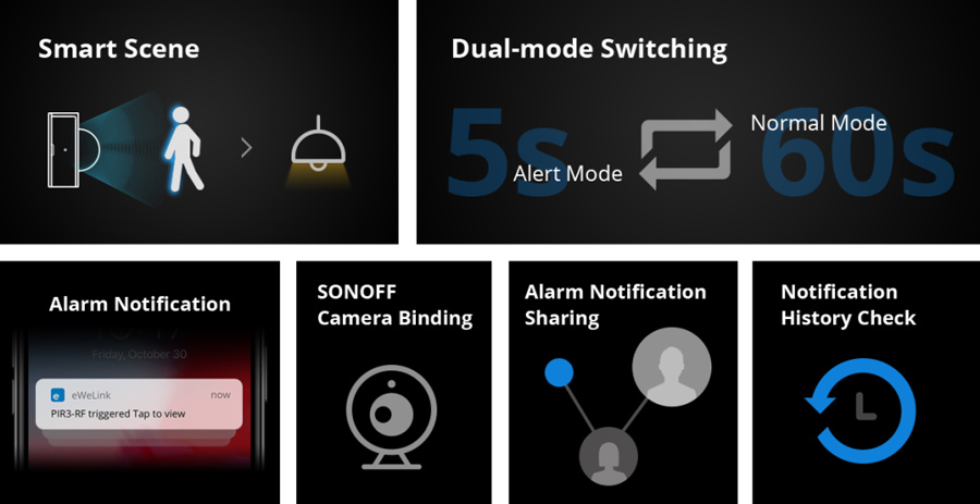 Χρησιμοποιήστε τον αισθητήρα κίνησης σε συνδυασμό με τις άλλες gateway συσκευές της Sonoff, για να εντοπίσετε την κίνηση ανθρώπων και ζώων.
