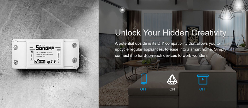 Ο διακόπτης BASICR2 είναι μια συσκευή χαμηλού κόστους, που σας βοηθά να μετατρέψετε το σπίτι σας σε "έξυπνο σπίτι". Είναι ένας WiFi διακόπτης που μπορεί να συνδεθεί σε οικιακές συσκευές διαφορετικών τύπων. Ο διακόπτης Sonoff σας επιτρέπει να ελέγχετε από μακριά όλες τις οικιακές συσκευές σας με την εφαρμογή eWeLink από το smartphone σας.