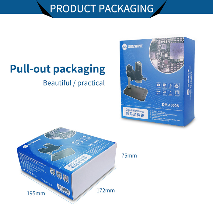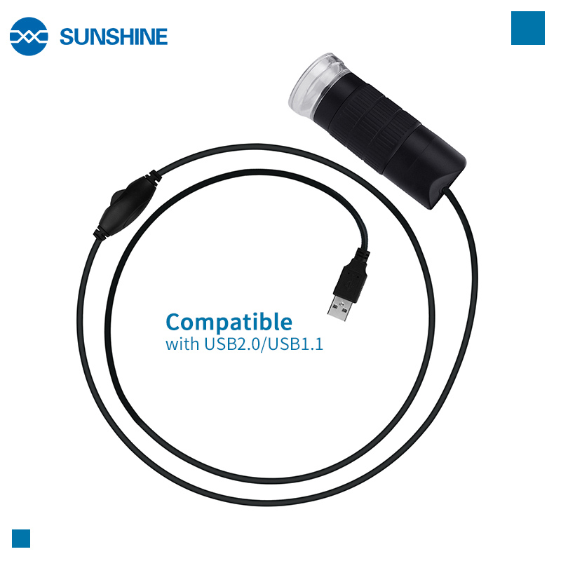 Ψηφιακό μικροσκόπιο της Sunshine, ιδανικό για επιθεώρηση ηλεκτρονικών εξαρτημάτων σε εργασίες επισκευής. Έχει εμβέλεια μεγέθυνσης 50x έως 1000x και υποστηρίζει ψηφιακό zoom 5x. Διαθέτει πλήκτρο που σας επιτρέπει ανά πάσα στιγμή να τραβήξετε φωτογραφίες και βίντεο. Επιπλέον, εξοπλίζεται με LED φωτισμό για καλύτερη ορατότητα κατά την εργασία σε πιο σκοτεινό περιβάλλον. Η σύνδεση του με laptop ή desktop γίνεται μέσω καλωδίου USB.