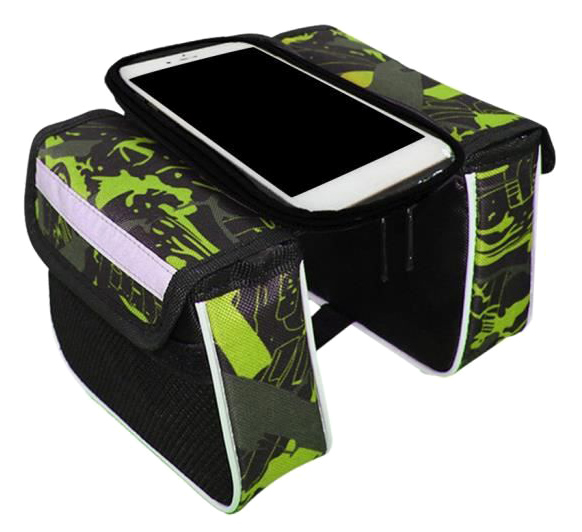Tσαντάκι ποδηλάτου BIKE-0035, με θήκη κινητού, μαύρο-πράσινο