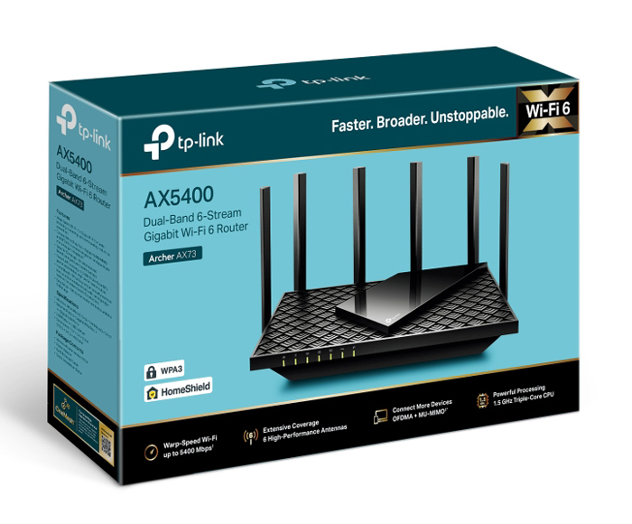 TP-LINK Router Archer AX73, WiFi 6, 5400Mbps AX5400, Dual Band, Ver. 1.0