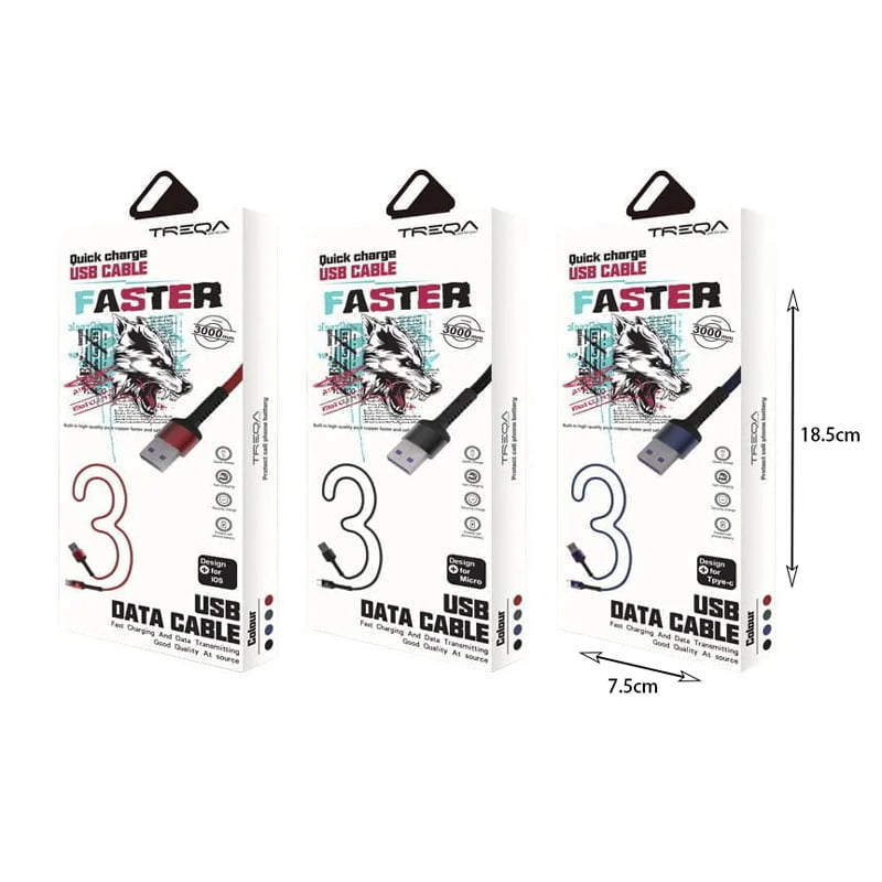 Treqa Καλώδιο κινητού για γρήγορη φόρτιση 3M USB Καλώδιο Type-C CA-8573