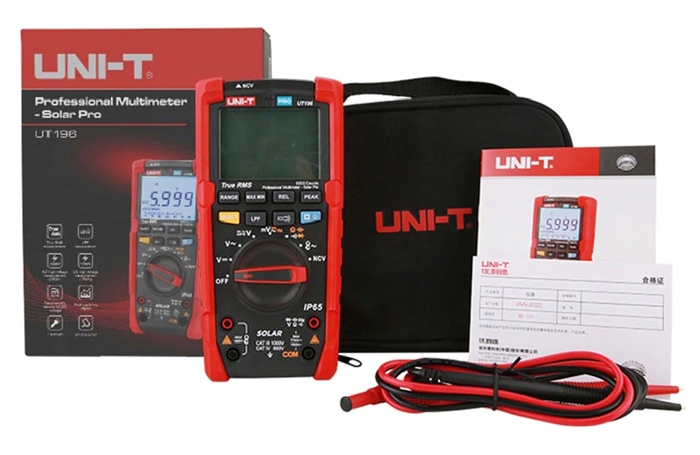 Το True RMS ψηφιακό πολύμετρο Solar Pro UT196 είναι ένα ιδανικό εργαλείο για τη συντήρηση συστημάτων ηλιακής ενέργειας. Αυτό το στιβαρό πολύμετρο έχει σχεδιαστεί για τεχνικούς που εργάζονται σε εξωτερικούς χώρους. Το UT196 μπορεί να μετρήσει έως 1700V DC και 1500V AC voltage, και 3000A AC current με χρήση αμπεροτσιμπίδας. Διαθέτει προστασία IP65 και μπορεί να αντέξει και πτώση 2 μέτρων.