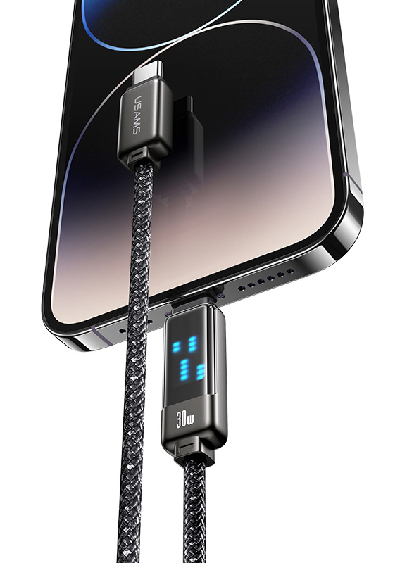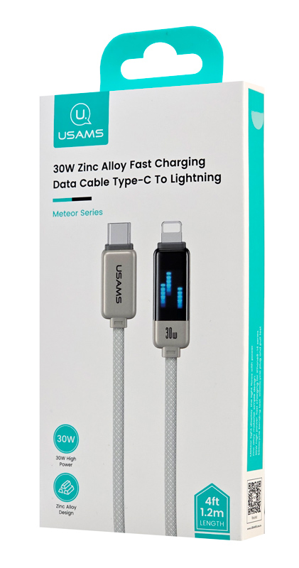 Καλώδιο φόρτισης και μεταφοράς δεδομένων Lightning σε USB-C της Usams. Υποστηρίζει φόρτιση με απόδοση έως 30W και μεταφορά δεδομένων με ταχύτητα έως 480Mbps.