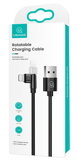 Καλώδιο φόρτισης Lightning σε USB της Usams, με περιστρεφόμενο βύσμα 180°.