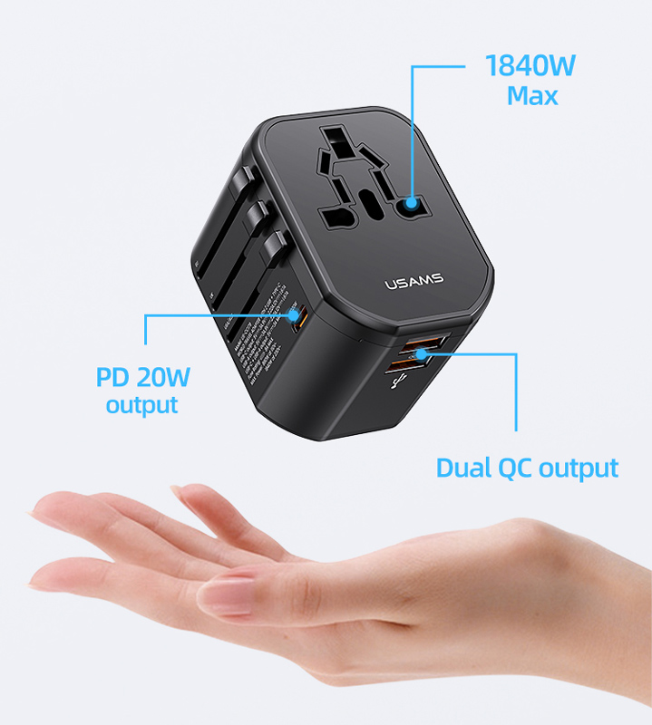 USAMS φορτιστής/αντάπτορας πρίζας US-CC179, USB-C & 2x USB, universal, 20W, μαύρος