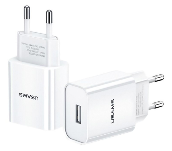 Υψηλής απόδοσης USB φορτιστής τοίχου της Usams, κατασκευασμένος από ανθεκτικό υλικό και συμβατός με όλες τις συσκευές που φορτίζουν μέσω USB θύρας.
