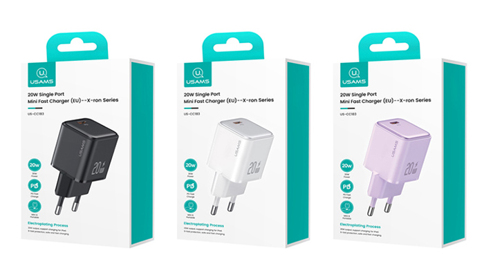 USAMS φορτιστής τοίχου US-CC183, USB-C θύρα εξόδου, 20W PD, μωβ