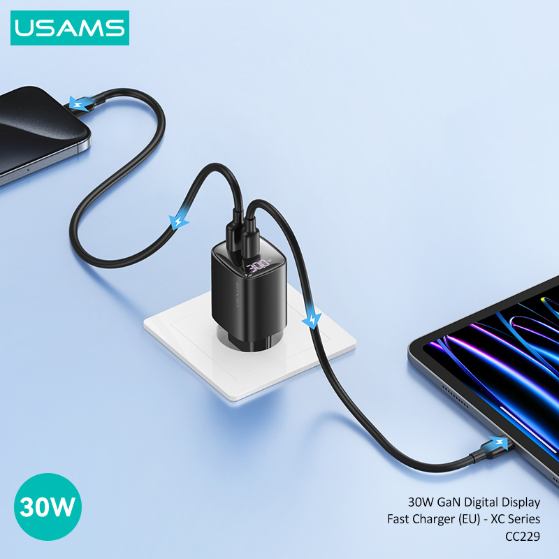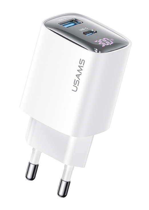 USAMS φορτιστής τοίχου US-CC229, USB & USB-C, 30W, GaN, λευκός