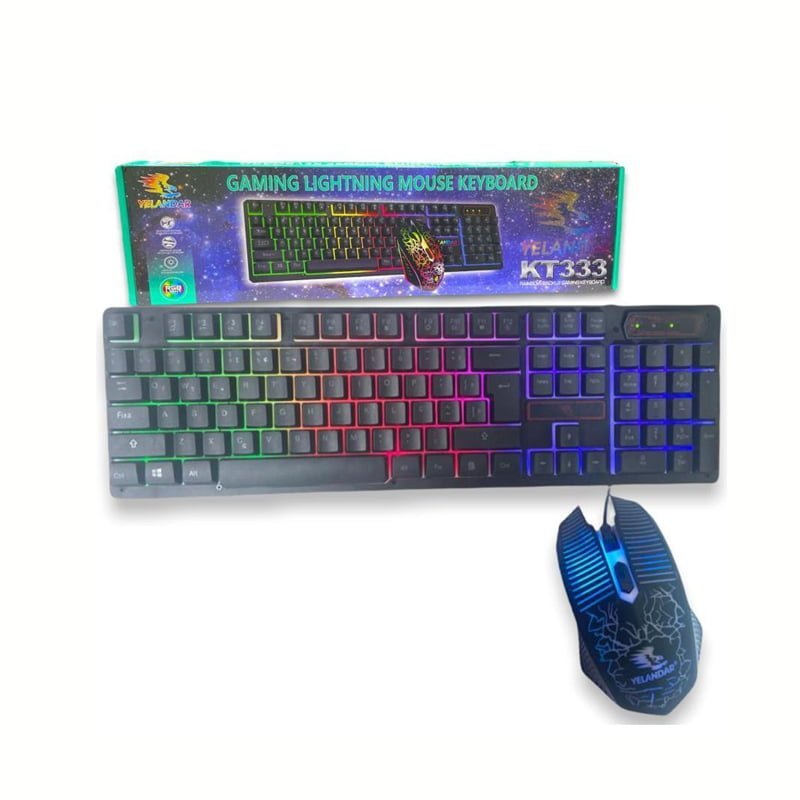 Κιτ πληκτρολογίου και ποντικιού παίκτη με ενσύρματο φωτιζόμενο RGB Led 2400DPI – Yelandar – KT333