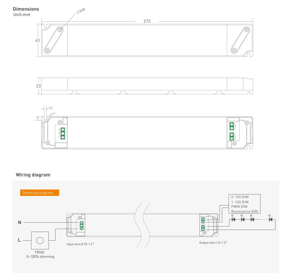 Dimming interface: TRIAC/0-10/1-10V/10V PWM/Resistance dim